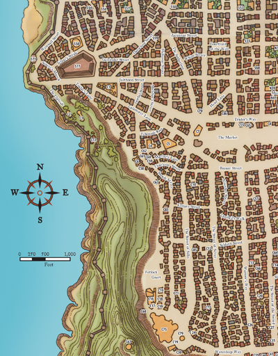Sea Ward: The wealthiest ward of the city, Sea Ward is home to noble families. It features broad streets, wondrous statues, bright and expensive shops, and its own arena, the Field of Triumph.