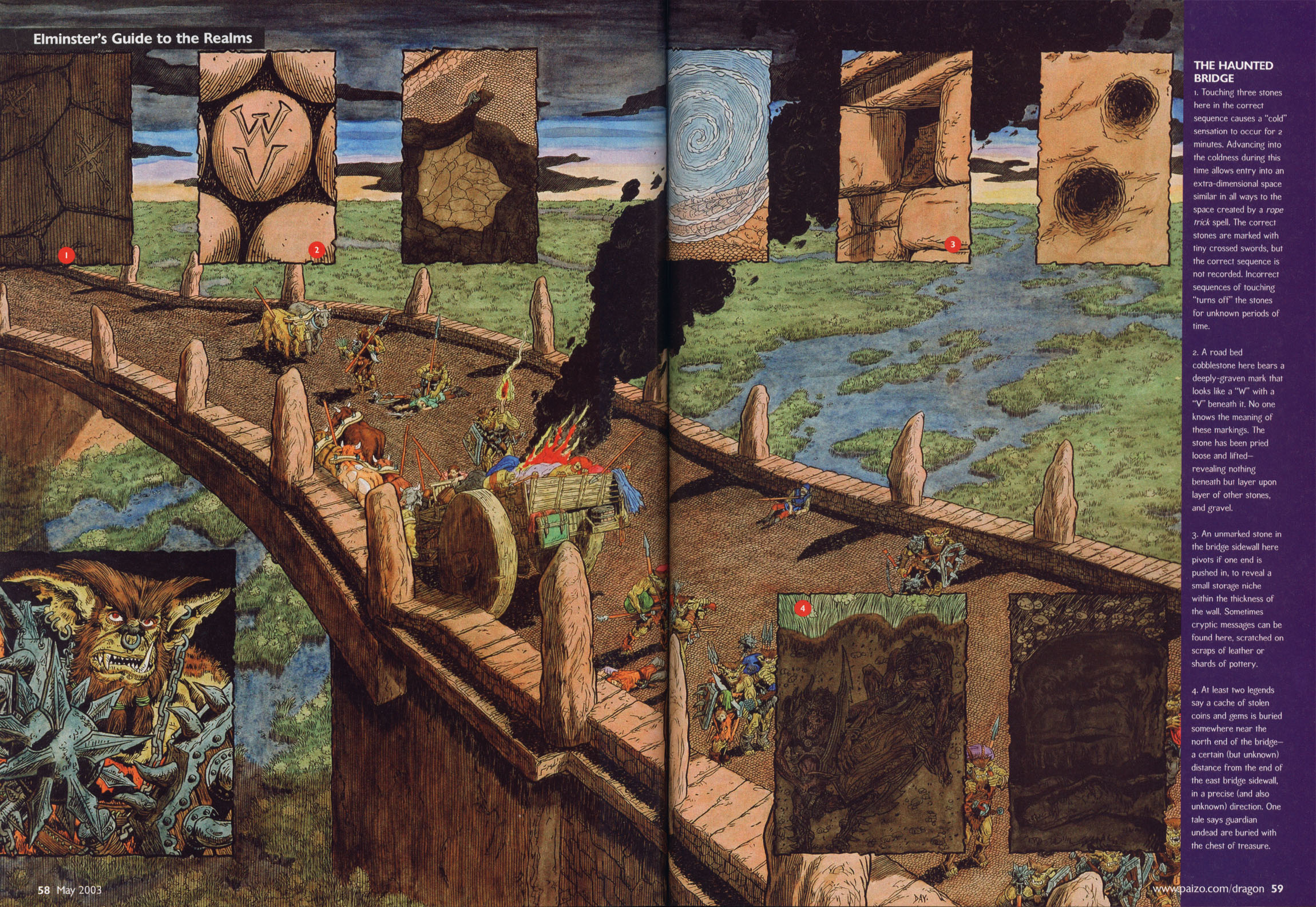 There are also ancient tales of a dragon that often landed on the bridge and then just as suddenly vanished, and a ring of glowing wizards seen standing in solemn meeting on the bridge by night, but if any of these sightings actually occurred, they've left no mark.