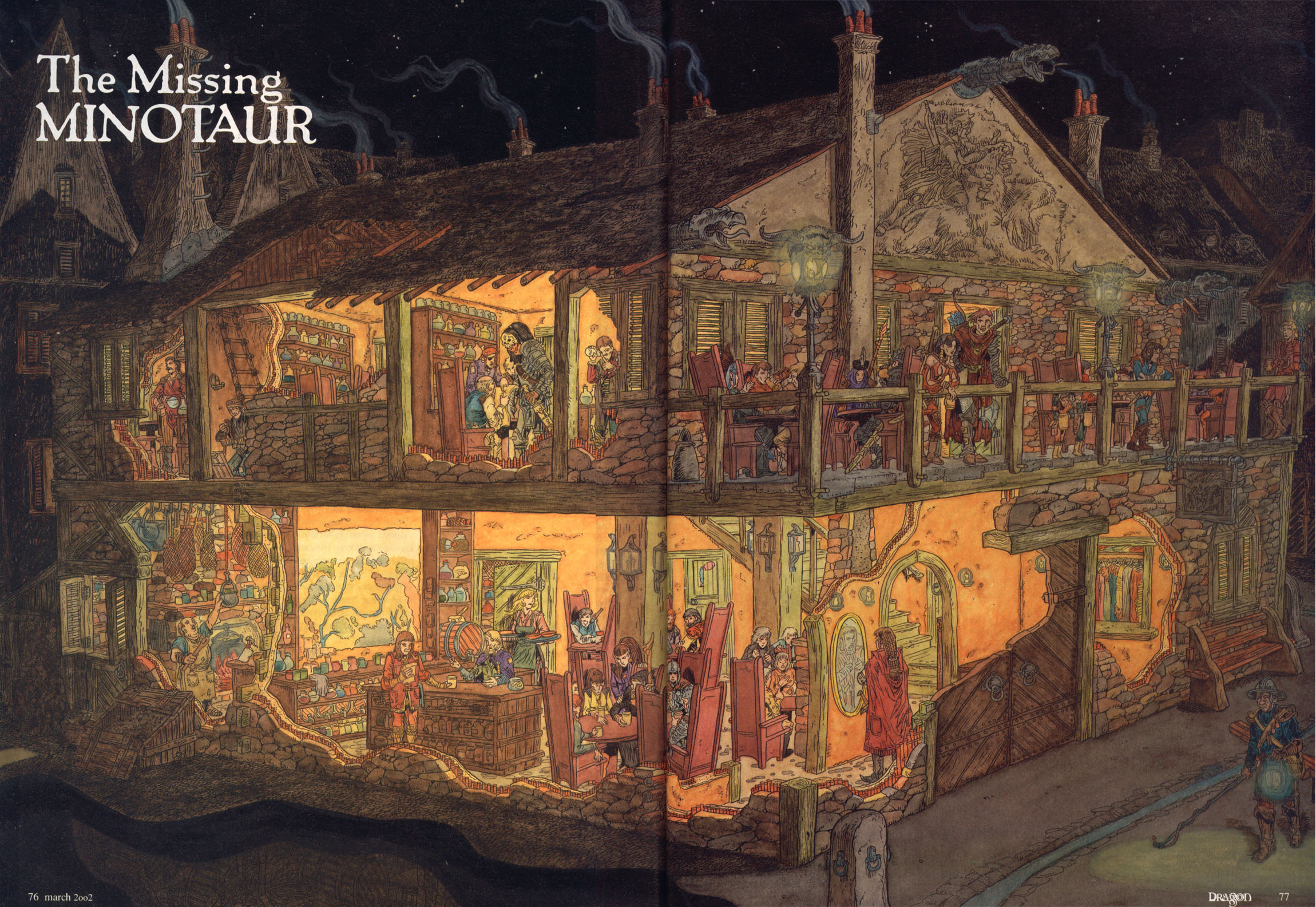The Minotaur is a rough, late-night-roaring place, specializing in potent brews (Thavarask doesn't hesitate to slip "knockout" poison into flagons when patrons become too rowdy or aggressive) and in becoming useful to half a dozen upstart merchant cabals and shady organizations seeking to take advantage of the developing North.
