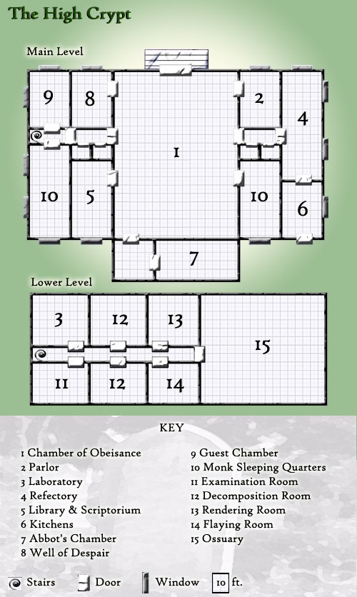 The Abbot of the High Crypt, as their base in the Silver Marches is called, is Seyjayanus (LE male human Mnk8/Ftr4). This enigmatic man embodies the mystique of the warrior-scholar, and, like many cast in that mold, he harbors a plan that he has not yet shared with those he leads. Seyjayanus believes that the mere study and understanding of individual deaths is not enough: He is convinced that the only way to truly serve the core principles of death is to study it on a grand scale.