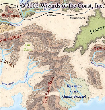 Deep within the heart of Rethild, the Great Swamp, nestles an abandoned city. Some believe it to be the home of a long-forgotten race. Swampy dangers such as shambling mounds, tendriculoses, and lizardfolk keep the casual and unprepared visitor far from this site, and few have ever returned from it. None of them have returned with wealth.