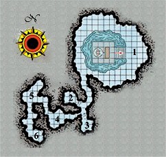 The mind flayers who use the secret caverns are members of an order of assassins known as the The Life Eater. Like the baphitaurs in the Labyrinth, they are devoted to the demon lord Baphomet, which makes them a chaotic anomaly among the illithids of Oryndoll. The main cavern (area 1) contains a statue of their Abyssal patron on a platform above a pool of briny water. A narrow tunnels winds south from this cavern into a series of small cave hideaways, including the home of the Life Eaters' leader, a mind flayer named Wiirlan (area 5). This tunnel ends in a small chamber (area 6) that contains another portal. The presence of the portal is marked only by four black gems set into the natural stone wall at the south end of the cavern, and it can be triggered only by placing a hand within the portal and saying the phrase, "The horned god shall rule Iltkazar." The dwarven city of Iltkazar is the portal's destination.