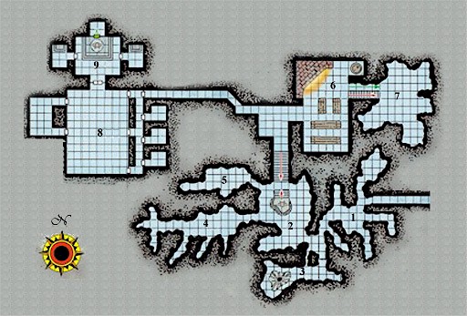 A portal in Iltkazar leads to a nondescript cavern, which also serves as the only place of entry for anyone stumbling upon the Unspoken Hall by way of nearby Underdark tunnels (area 1 on the map). A number of dead-end tunnels branch off from this area, as well as one narrow tunnel that winds over a treacherous and monster-infested route to a main Underdark thoroughfare connecting Ched Nasad to distant Menzoberranzan.