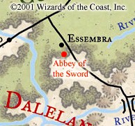 In the immediate wake of the Time of Troubles, Eldan Ambrose, an Amnian priest of Tempus, tracked the Foehammer's appearance in Mistledale back to the hold of Belarus, a long-dead worshiper of Tempus, by following a trail of red tears (gems) into Battledale. While standing within what was once the castle's great hall, Eldan received a vision from the Foehammer confirming that site was henceforth to be held sacred to the Lord of Battles. Eldan and his followers established the Abbey of the Sword and set about rebuilding the castle and sinking deep wells to reach a lake of cool, sweet water in the Underdark. The lake lay within a cavern network riddled with portals, including one portal through which the avatar of Tempus has reached Mistledale.