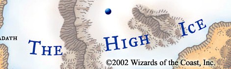 The High Ice is a frozen wasteland located on a plateau in northern Anauroch. The harsh environment and its monstrous inhabitants deter all but the most foolhardy adventurers. An unprepared party will easily become lost and disoriented amid the monochromatic landscape, and it may even starve or freeze to death -- if the group doesn't fall prey to something first.