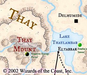 It is unlikely that someone would stumble across the portal by accident, though Torin knows of its general location and may one day choose to go searching for it. More likely, the portal would be uncovered by an insane or deluded spellcaster who sought to usurp Zzarka's magical secrets -- or perhaps by a well-meaning paladin looking for a way to mobilize an army against the forces of darkness that dwell within the Negative Energy Plane. In any case, it will take extensive research, as well as access to some of Zzarka's private files that remain in her lab near Lake Thalambar, to uncover the exact location of this most abominable of portals. That is, unless Zzarka herself one day emerges from hiding and uses the portal to unleash a plague of undeath upon the living world.