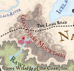 The first portal leads to a clearing in the Forest of Mir. At this point, seekers must use the map again. By taking this new location as the starting point, one can follow the map to a second location at the very eastern end of the Cloven Mountains. At this location, another cave, nothing but another portal is here, and that is marked simply by four rocks on the wall of the cavern. This portal uses the same key word as the first one.