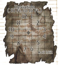 Caltrops: Caltrops resemble large metal jacks with sharpened points rather than balls on the ends of their arms. They are essentially iron spikes designed so that one point is always facing up. You scatter them on the ground in the hope that your enemies step on them or are at least forced to slow down to avoid them. One bag of caltrops (the 2-pound unit listed on Goods and Services) covers an area 5 feet square. Each time a creature moves into an area covered by caltrops (or spends a round fighting while standing in such an area), the creature may step on one. The caltrops make an attack roll (base attack bonus +0) against the creature. For this attack, the creature's shield, armor, and deflection bonus do nor count. (Deflection averts blows as they approach you, but it does not prevent you from touching something dangerous.) If the creature is wearing shoes or other footwear, it gets a +2 armor bonus to AC. If the caltrops succeed at the attack, the creature has stepped on one. The caltrop deals 1 point of damage, and the creature's speed is reduced by one-half because its foot is wounded. This movement penalty lasts for 1 day, until the creature is successfully treated with the Heal skill (DC 15), or until it receives at least 1 point of magical curing. A charging or running creature must immediately stop if it steps on a caltrop. Any creature moving at half speed or slower can pick its way through a bed of caltrops with no trouble.